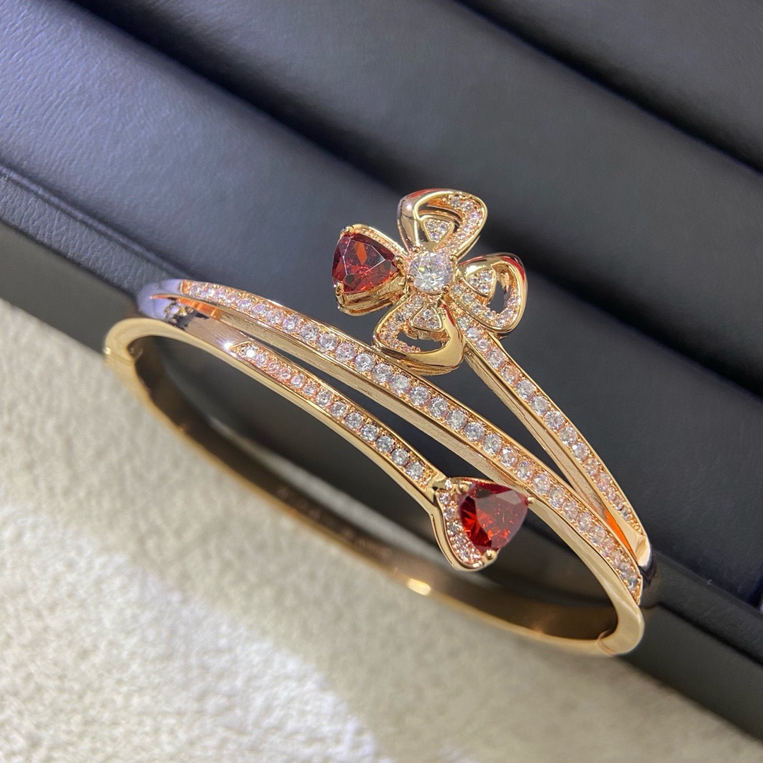 新商品の宝家永花風車のブレスレットは18kの金花の形の赤い宝にダイヤモンドの高級感のファッションの女性のブレスレットを入れます。