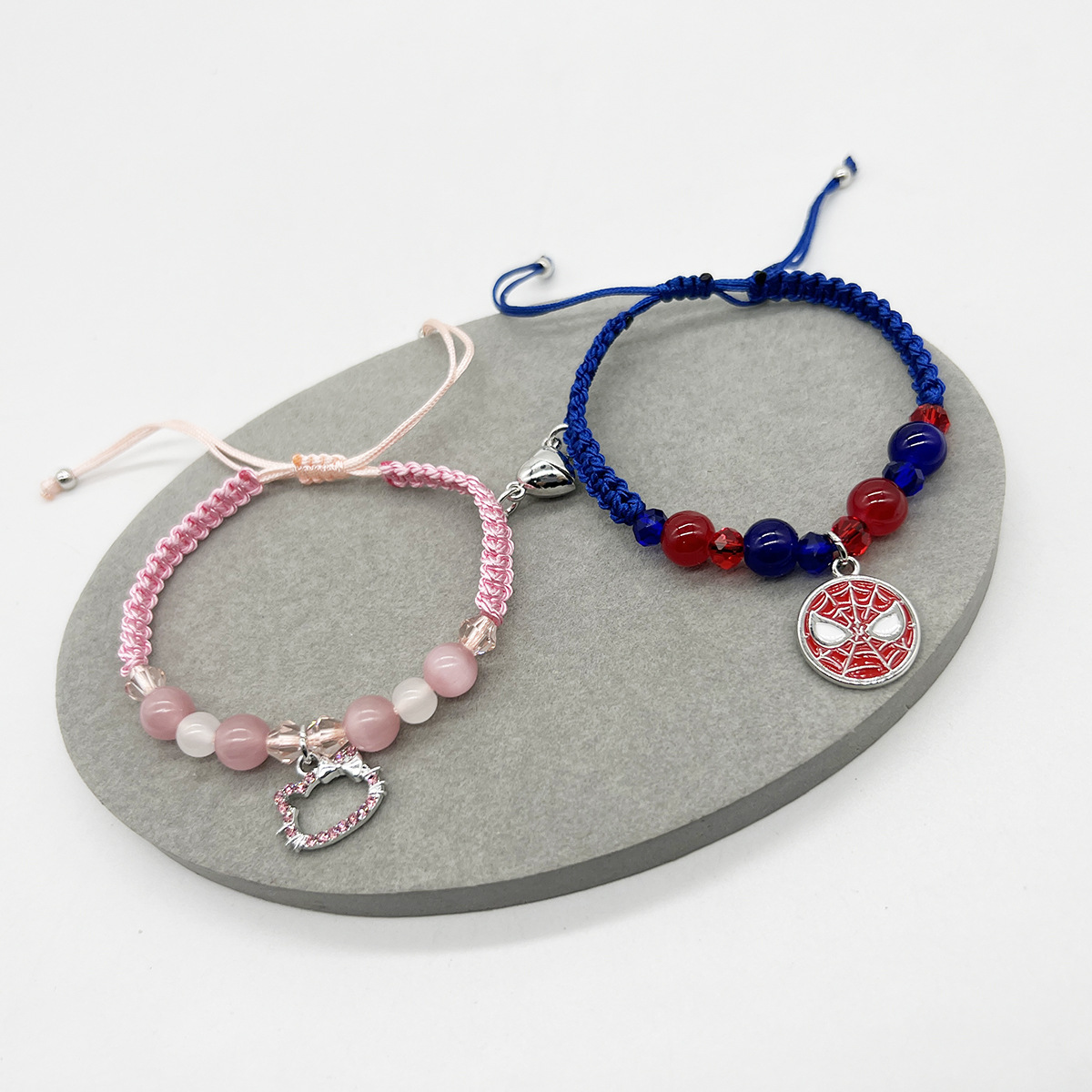クロスボーダーTK同モデルkt猫スパイダーマン新型ハート型マグネットブレスレット手編み手編みビーズアクセサリー