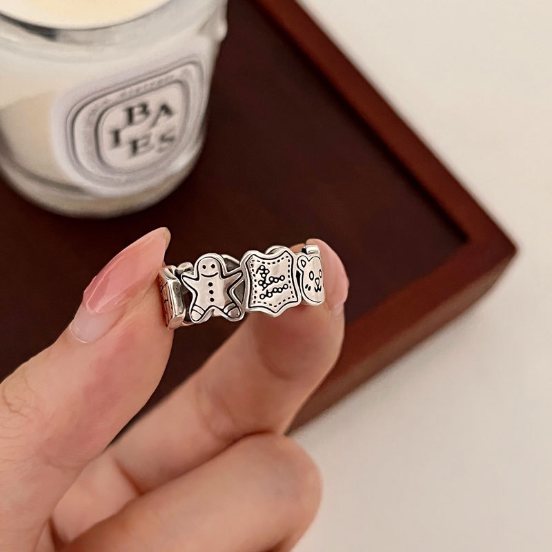 乾佳s925純銀姜パイ人指輪かわいいアニメ熊開口戒クリスマス秋冬新作ins風