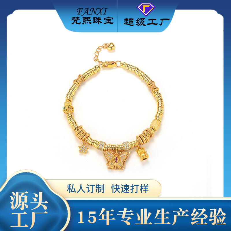 S925銀金メッキ盤巻きブレスレットは蝶熊をはめ込んで爆発します。