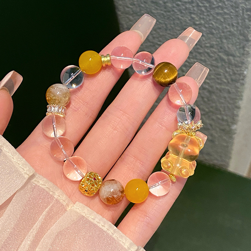 新中国式招財黄水晶手串甘美で可愛い熊狐天然石多宝ブレスレットお嬢様プレゼント