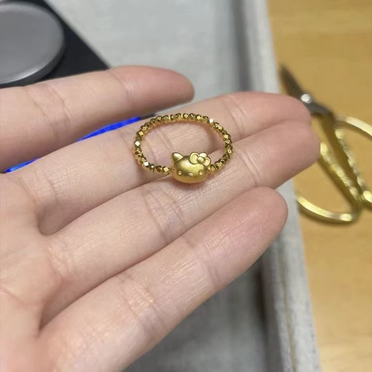 2024新型シンプルで贅沢なkt猫指輪女性かわいい甘いファッション洗練された大衆デザイン高級感指輪