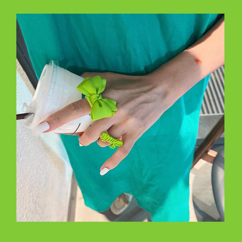 韓国の精巧で可愛い緑の大げさな熊の蝶結びの指輪の女性