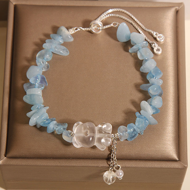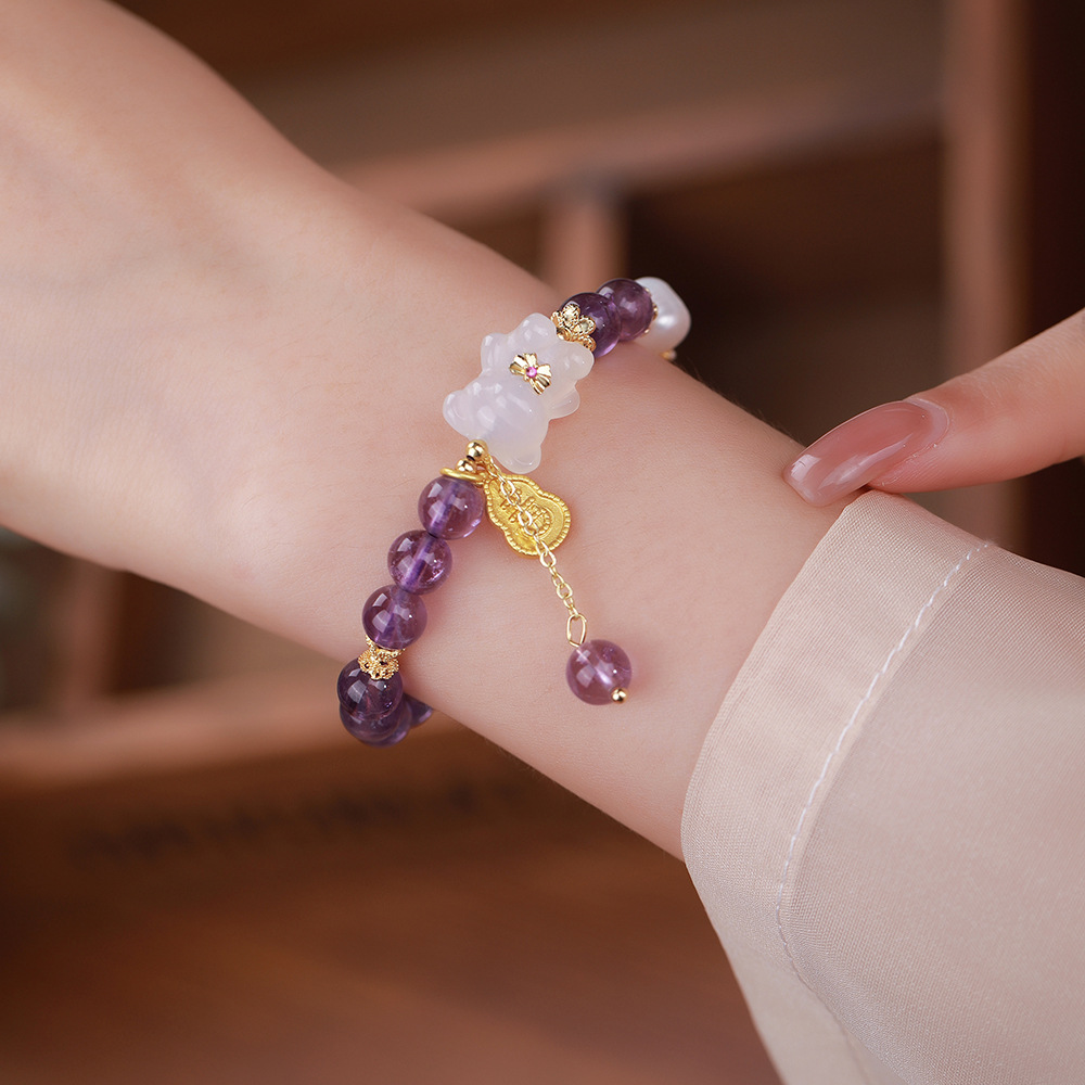 女性用天然砂利クリスタルブレスレット、新しい中国風のライトラグジュアリーニッチ絶妙なハイエンドホワイトクリスタルベアブレスレット
