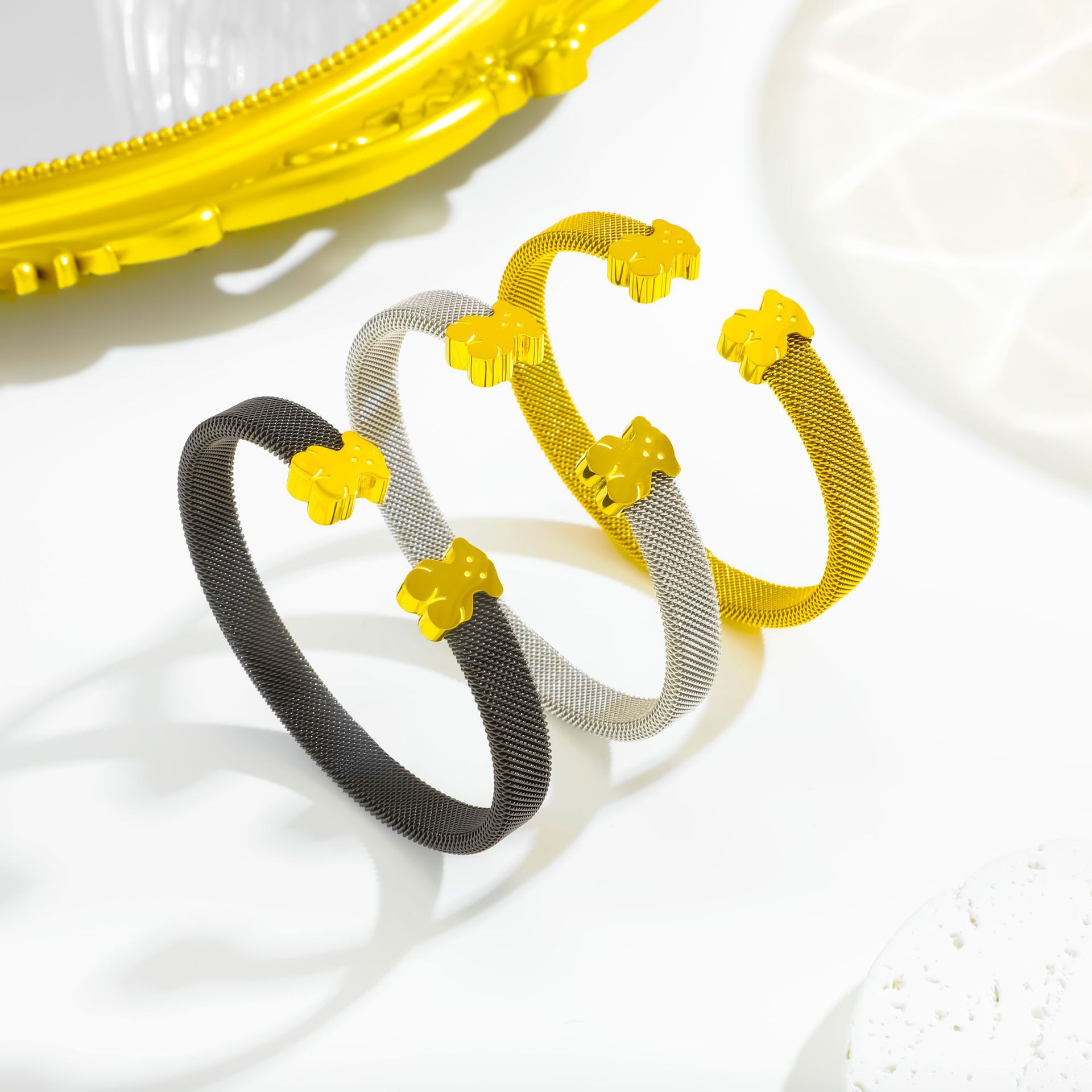 欧米のファッションクロスボーダー専用の編み網の腕時計の熊の開口部のC形の腕輪のシンプルなファッションの女性の装飾品
