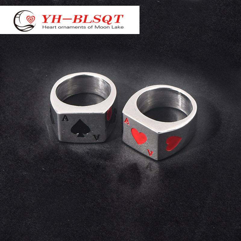 千叶オリジナルデザインタイシルバーオリジナルデザイン手作り街并みヒップホップスタイルトランプカップル开きリング潮