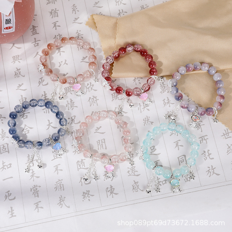 熊のグラデーション瑠璃の手作りの数珠のブレスレットの女性の鈴の流蘇水晶の小さい清新な観光地区は屋台を並べて爆発的に卸売りします。