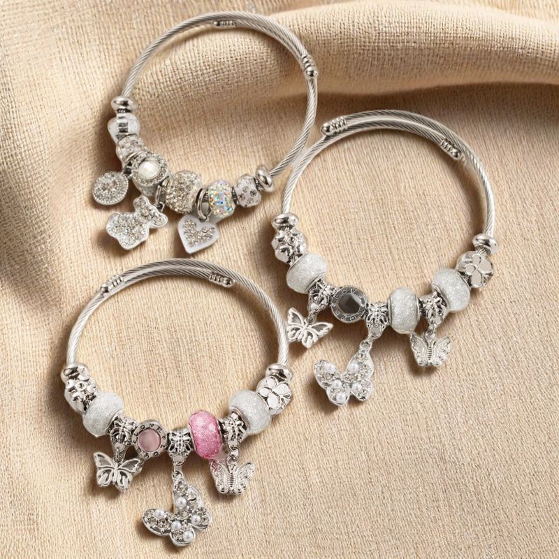 ヨーロッパとアメリカの新しい Pankuoduo ラステンレス鋼ブレスレット女性のためのダイヤモンドビーズクマ愛ペンダントブレスレット卸売