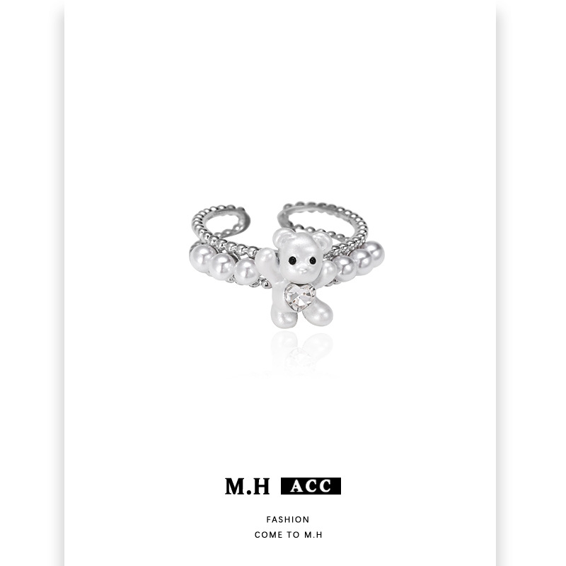 甘くてかわいいクマの模造パールリング、女性用、軽い高級感、ニッチなデザイン、ハイエンド、ファッショナブルで多用途な人差し指リング