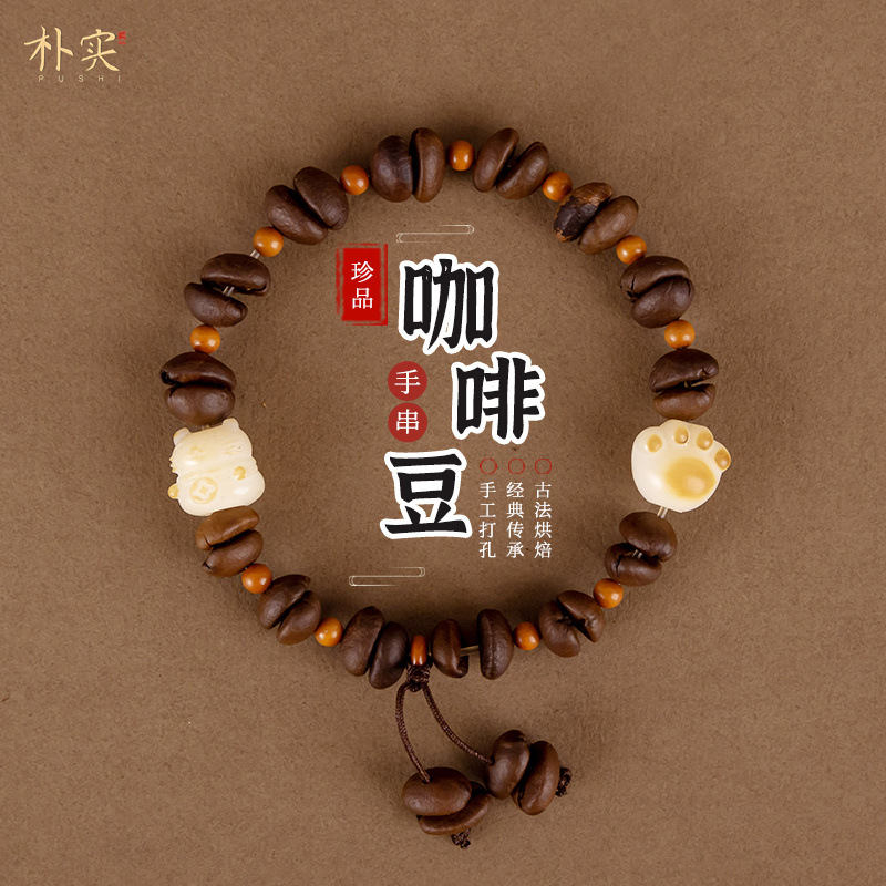 本物のコーヒー豆はとても爽やかです、木彫りのクマの手作りのおもちゃ、ファッショナブルな仏珠ブレスレット、ニッチなデザインのカップルブレスレット
