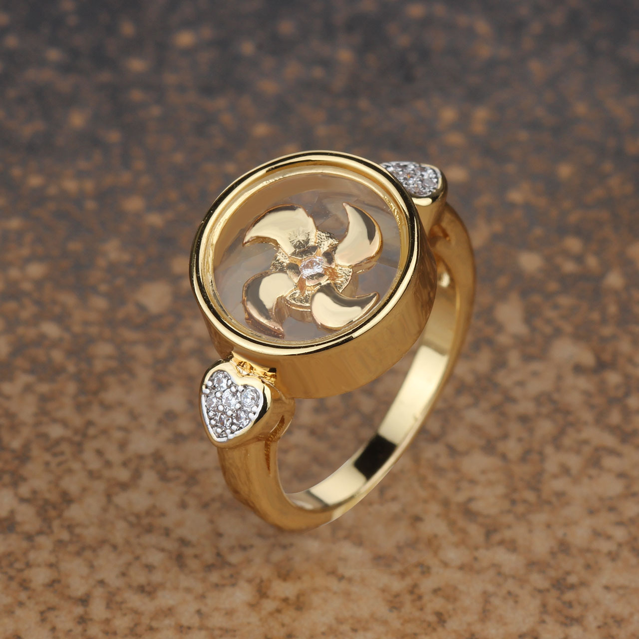 東南アジアファッション指輪風車時に運転するハート型女性リング風車回転ガラス防水リング