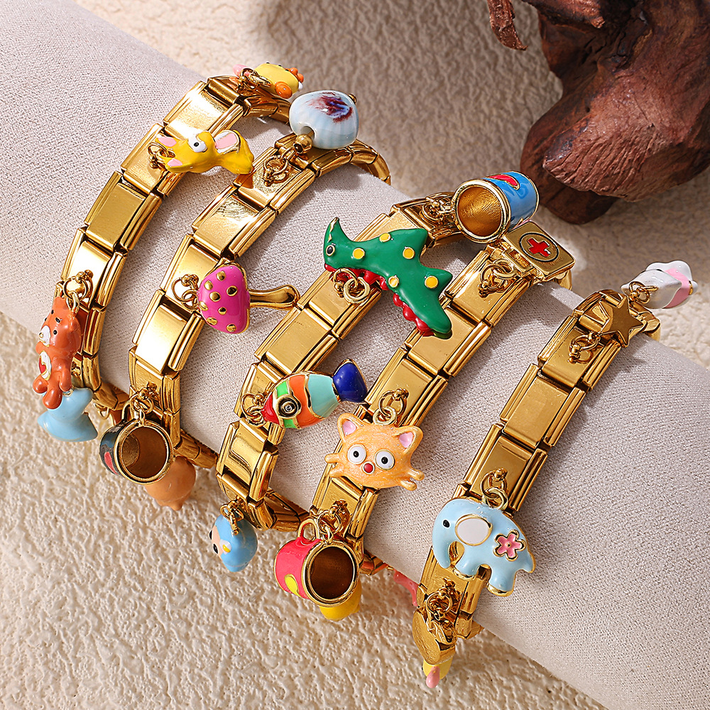 ホット販売クロスボーダー新イタリアンスタイルモジュールブレスレット動物シリーズクマ恐竜ペンダントステンレス鋼ブレスレット