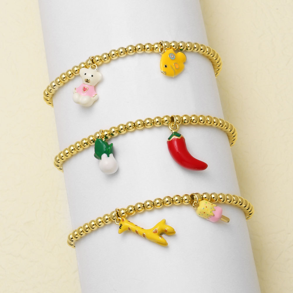ASアクセサリー希音temuクロスボーダー人気銅メッキ18kゴールドビーズ熊唐辛子ペンダントブレスレット女性brm 96