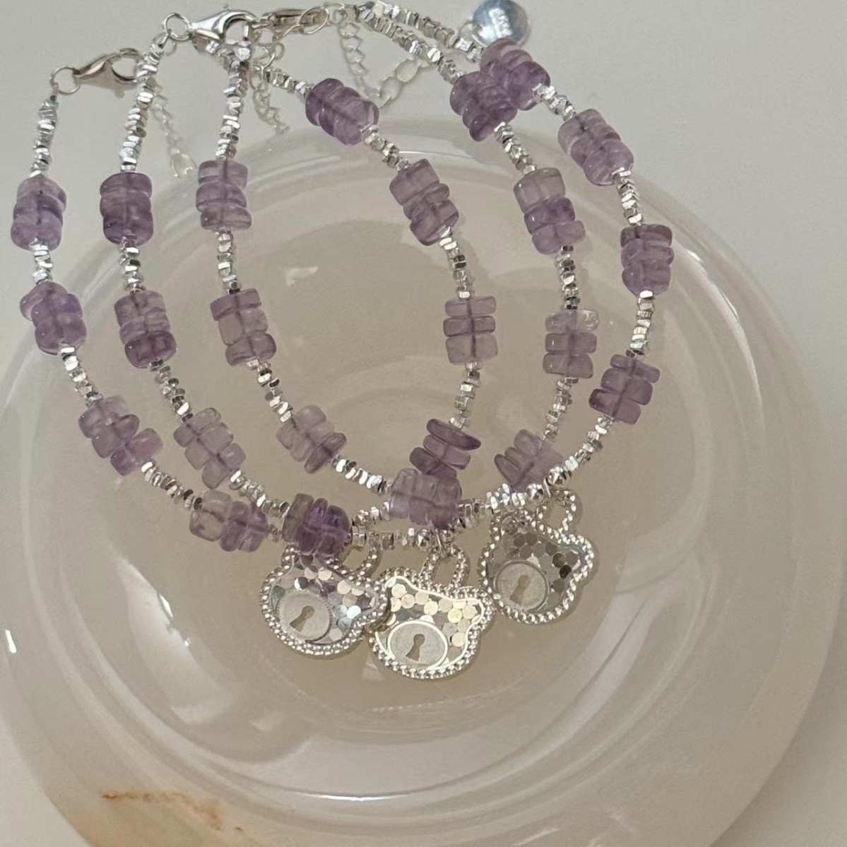 アントラセン輪s925砕銀天然紫水晶ブレスレットかわいい熊ペンダントins風精致水晶手飾り