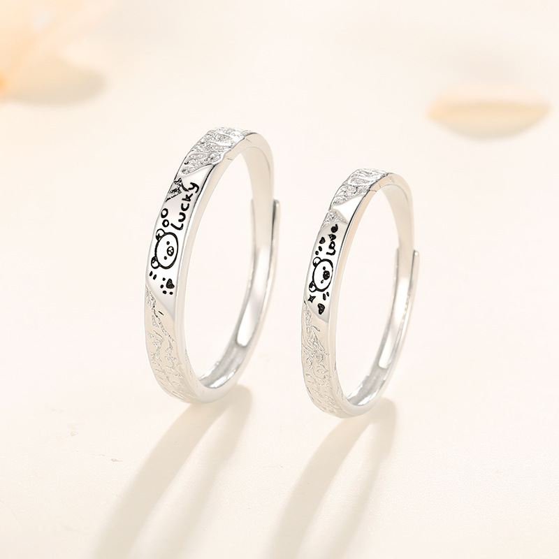 ラッキーベア カップルリング S999 スターリングシルバー リトルレッドブック Douyin 同じスタイルのリング ガールフレンドへの誕生日プレゼント