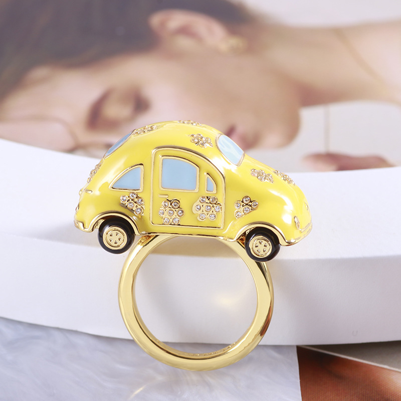 欧米のアクセサリーの卸売りのエナメルの釉薬の趣味のかわいい小さい車の形の創意の個性の指輪の指輪の混紡の女性