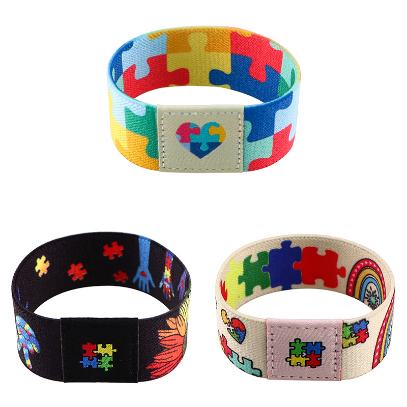 自閉症のジグソーパズルの弾力性のある手環の腕ベルトの運動の腕の熱い転写の印刷は緩みます。