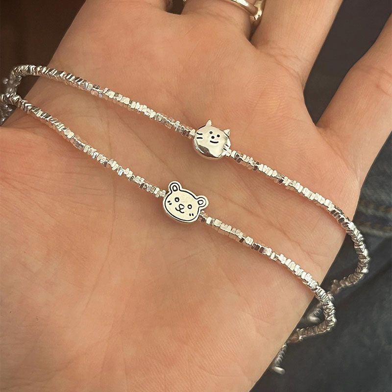 見栄えの良い子猫とクマの親友ブレスレット 2025 新しいホットスタイル絶妙なブロークンシルバーブレスレットハイエンドカップルブレスレット