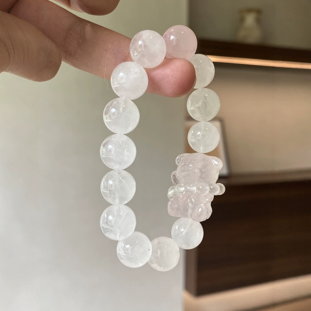 天然莫粉水晶青提乳蓋玉手串水晶熊清新好気分甘ブレスレット女プレゼント