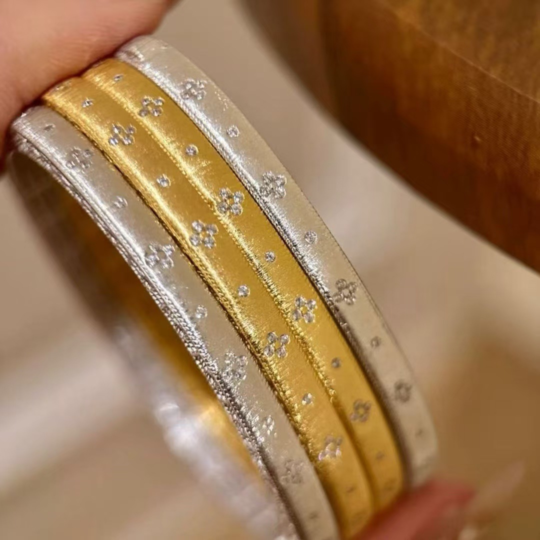 高品質万華鏡四つ葉のクローバーラテアートヘビーデューティイタリア製ブラッシュ加工S925シルバーゴールドメッキ2色ブレスレット女性用