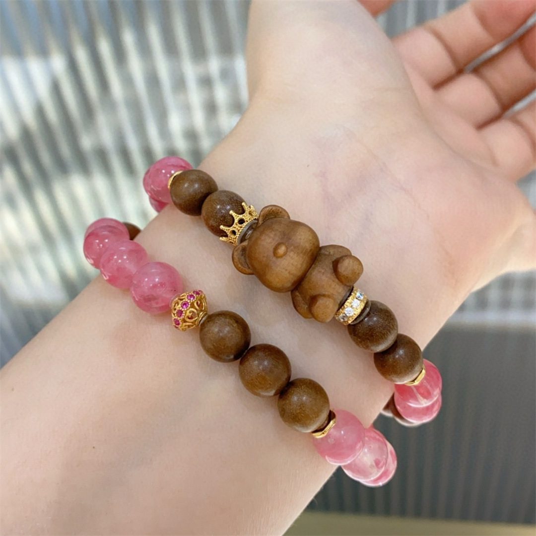 ローズクォーツ サンダルウッド ベア ビーズ S925 シルバー 8mm デイリー マッチング ビーズ ブレスレット 小紅書 Douyin ライブ スタイル