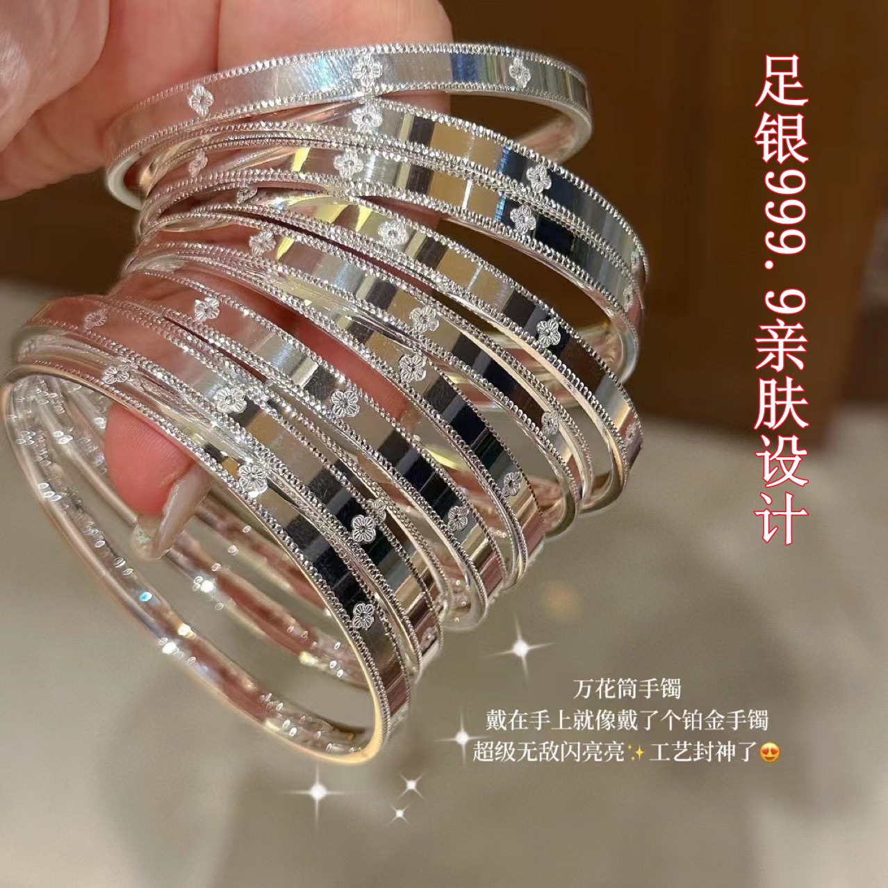 純銀 9999 四つ葉のクローバー万華鏡シルバーブレスレットレディースハイエンドシルバーブレスレットライト高級ニッチギフトガールフレンド