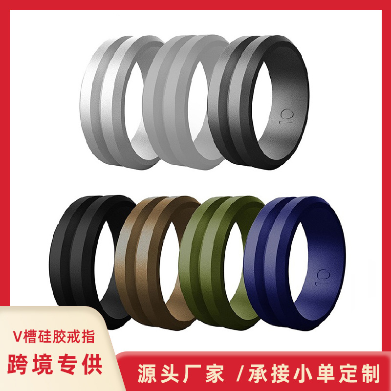 クロスボーダーV字溝斜めエッジメンズシリコンリング、食品グレードの環境に優しいシリコン、快適で柔らかく、工場直販