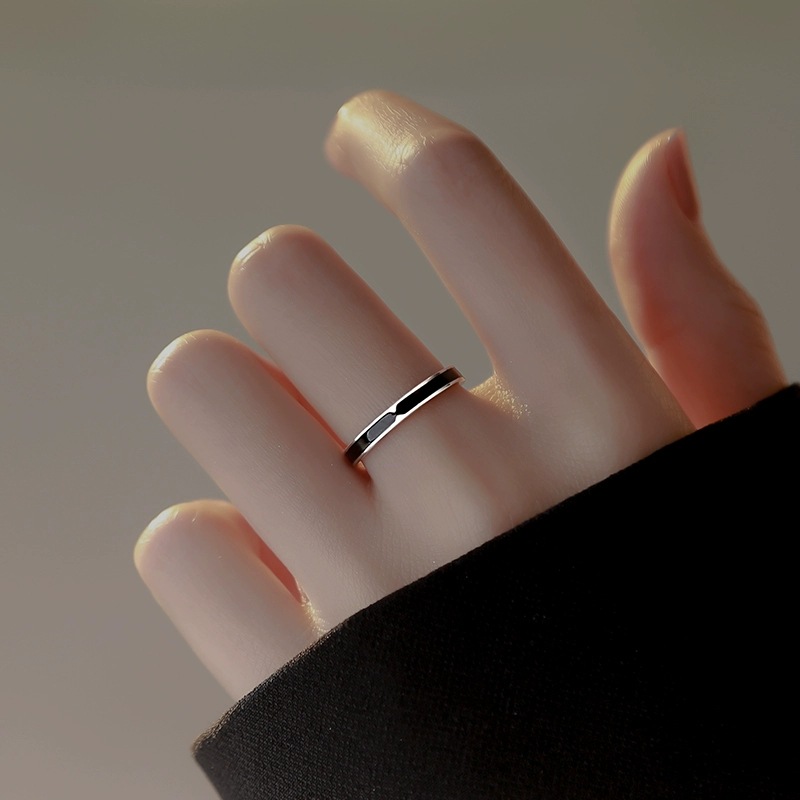 黒滴ゴム素輪指輪女性デザイン小衆2022新型開口部はファッション個性滴油戒子を調節できる