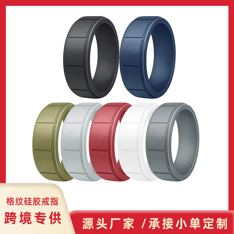 新しいヨーロッパとアメリカのシリコンリング、アマゾン8mm格子柄カップルシリコン指輪、アウトドアスポーツリング卸売