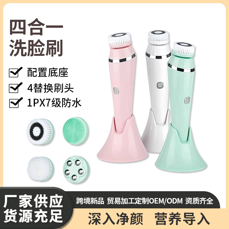 国境を越えた新しいシリコン洗顔器防水充電式洗顔ブラシ毛穴クリーナー4-in-1電動洗顔器