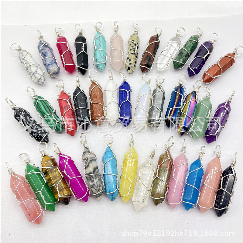 外国貿易の爆発金は糸の六角柱のペンダントの天然水晶のネックレスを巻いて手で銀糸の弾丸のアクセサリーの卸売りを巻きます。