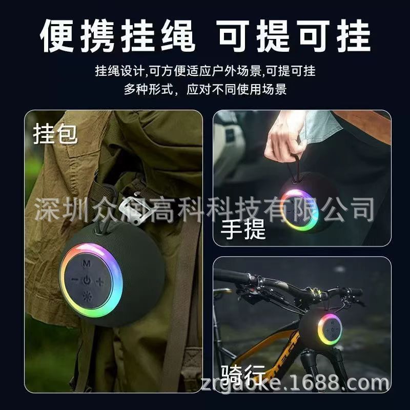 国境を越えたポータブルBluetoothスピーカー、防水屋外小型スピーカー、RGBライト、大音量、小型ワイヤレススピーカー
