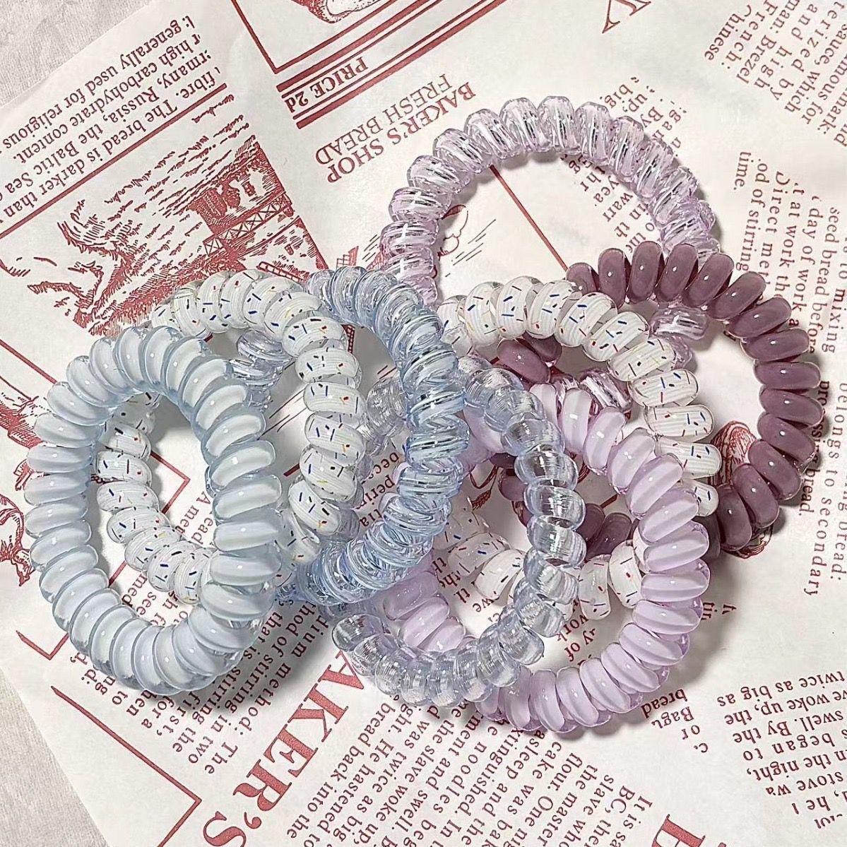 韓国風スイートヘアアクセサリー 夏用電話コード風丸型ヘアゴム 女性用高級感ヘアリング 丸型万能ヘアゴム 髪を結ぶゴムバンド