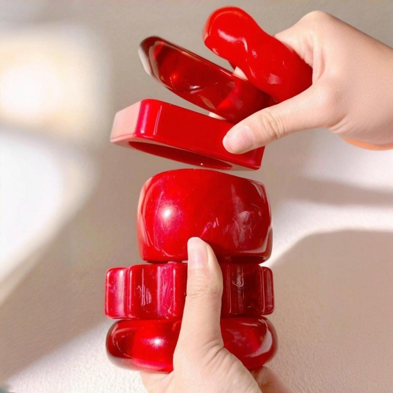 Xiyin 越境ホット販売ラウンド赤不透明樹脂ファッションシンプルな多用途幾何学的な樹脂ブレスレット卸売