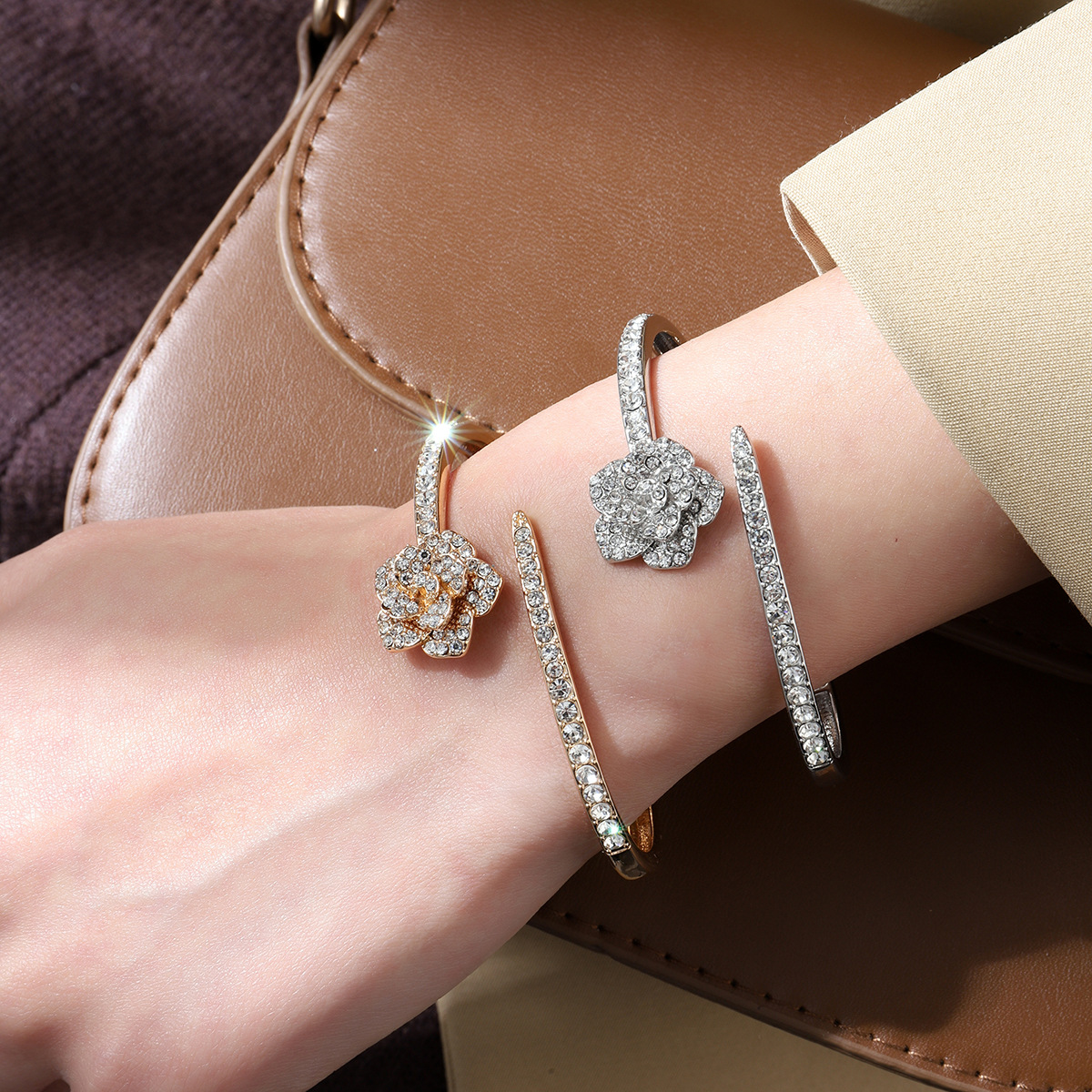マイクロ散りばめられたラインストーンのフラワーオープンブレスレット、ファッショナブルで軽い高級感とハイエンドのブレスレット、シンプルで多用途なパーソナライズされたジュエリー卸売