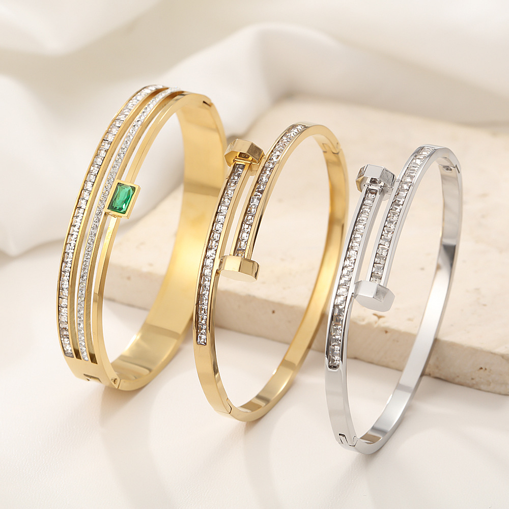 国境を越えた売れ筋のゴールデンステンレススチールブレスレット、色あせしない、女性用ハンドジュエリー、ハイエンドのオープンデザイン、ジルコンとダイヤモンド
