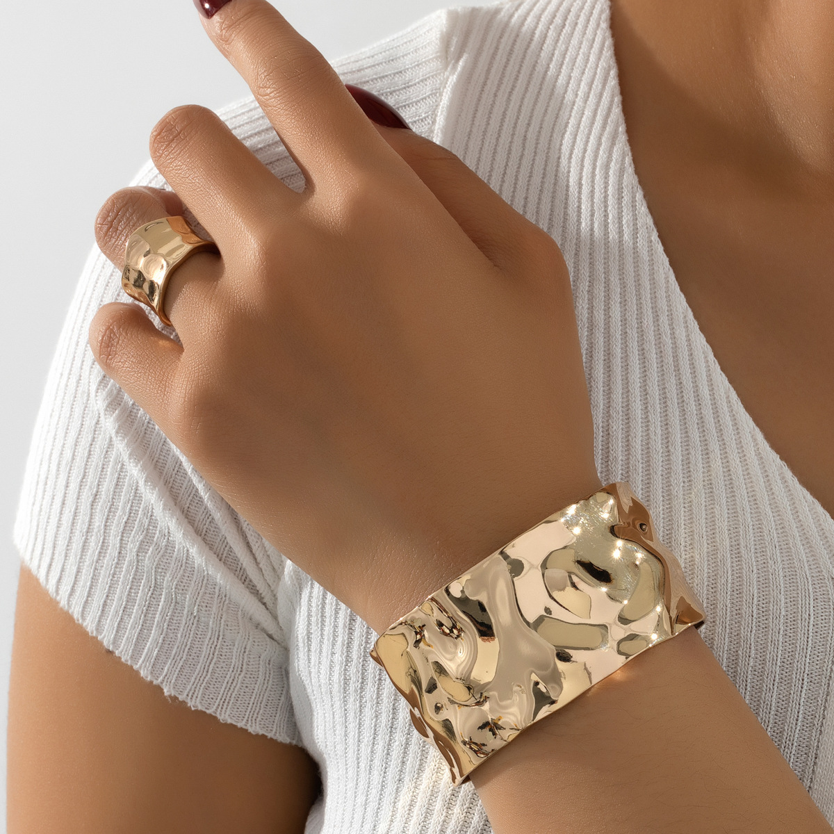 クロスボーダーINSスタイル不規則なチタン鋼オープンブレスレットパーソナライズされたニッチ非退色18Kゴールドメッキステンレススチールブレスレット