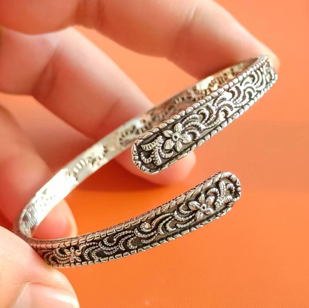 個性的なデザイン民族風エンボス古銀開口ブレスレットins紅書網紅復古国風漢服手飾り