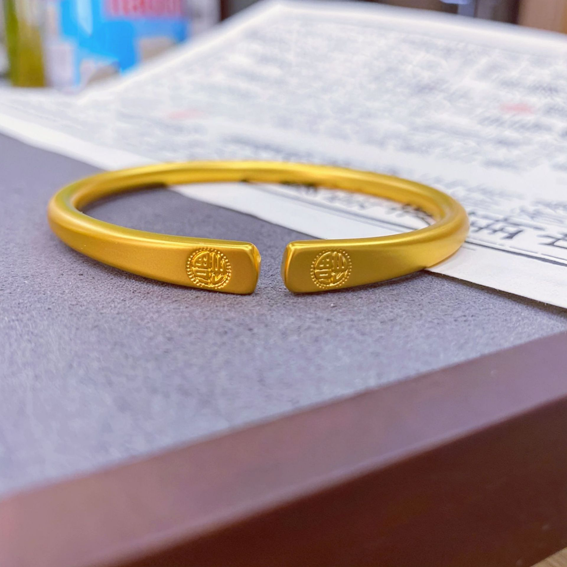 サンドゴールドジュエリー、ソリッドオープンリングブレスレット、エレガントな祝福の言葉のブレスレット、女性用イミテーションゴールドブレスレット、軽い贅沢と高級感