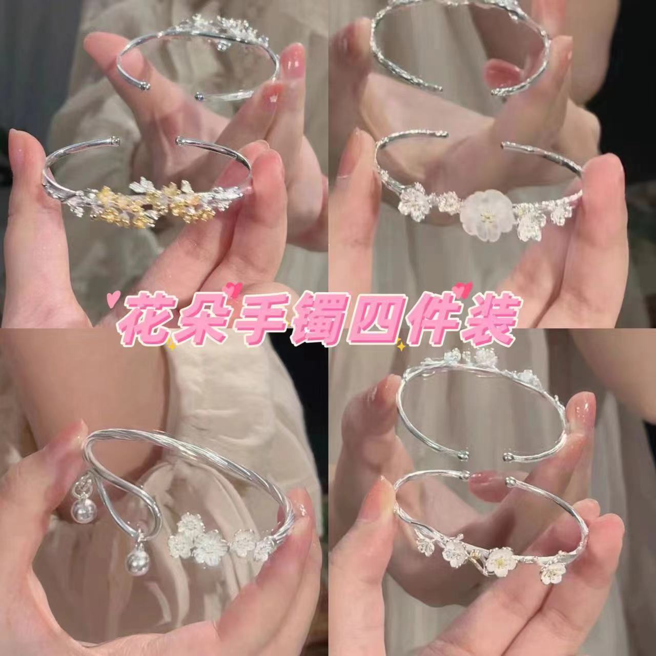 双環四葉草ブレスレット女性百合ブレスレット白銅メッキ銀三世手環小衆デザイン日韓新商品