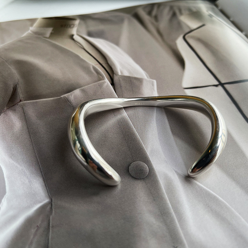 韓国の輸入925純銀の中実のアークの小さい大衆の設計の独特な個性の百合の銀の装飾のファッションの開口のブレスレット