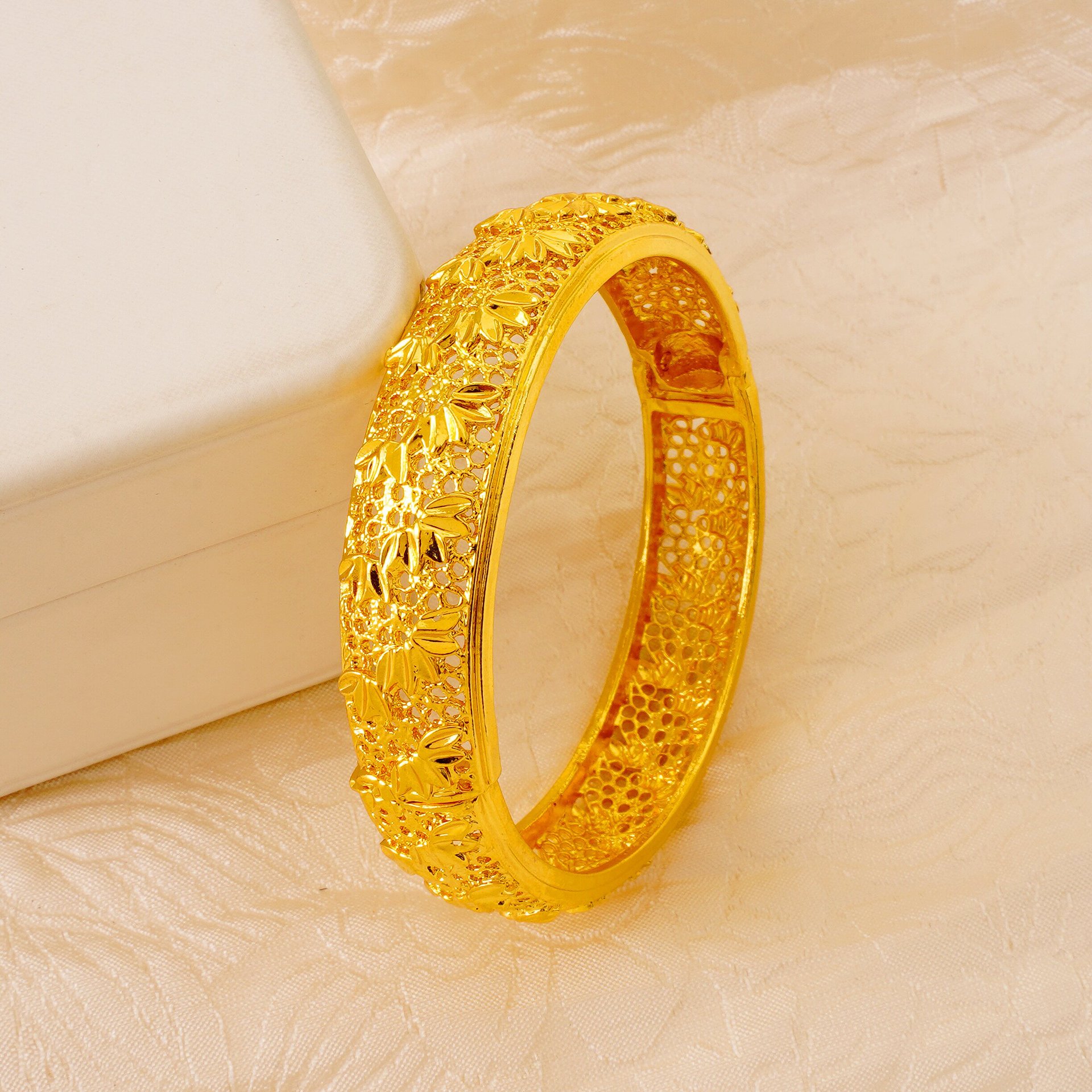 ドバイ女性24k金メッキ透かし彫りブレスレットインドアラブ花嫁結婚アクセサリー金ブレスレット卸売り