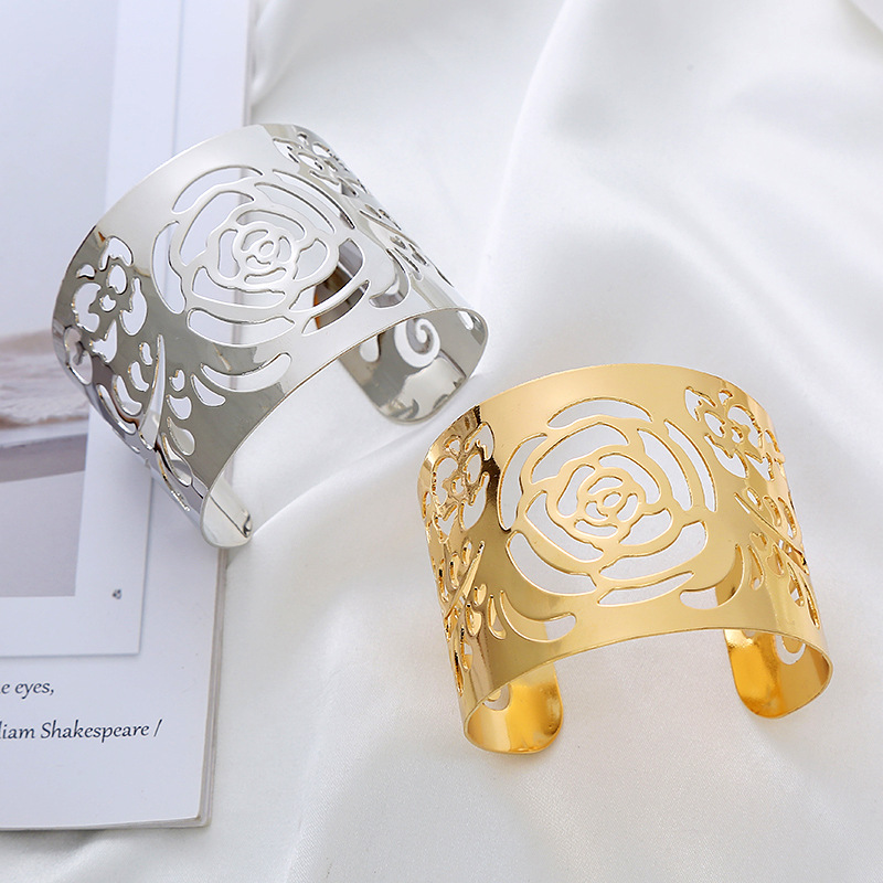欧米のファッションの流行のアクセサリの卸売りは誇張して金属の透かし彫りの花のブレスレットの開口の質感の創意のアクセサリを彫ります。