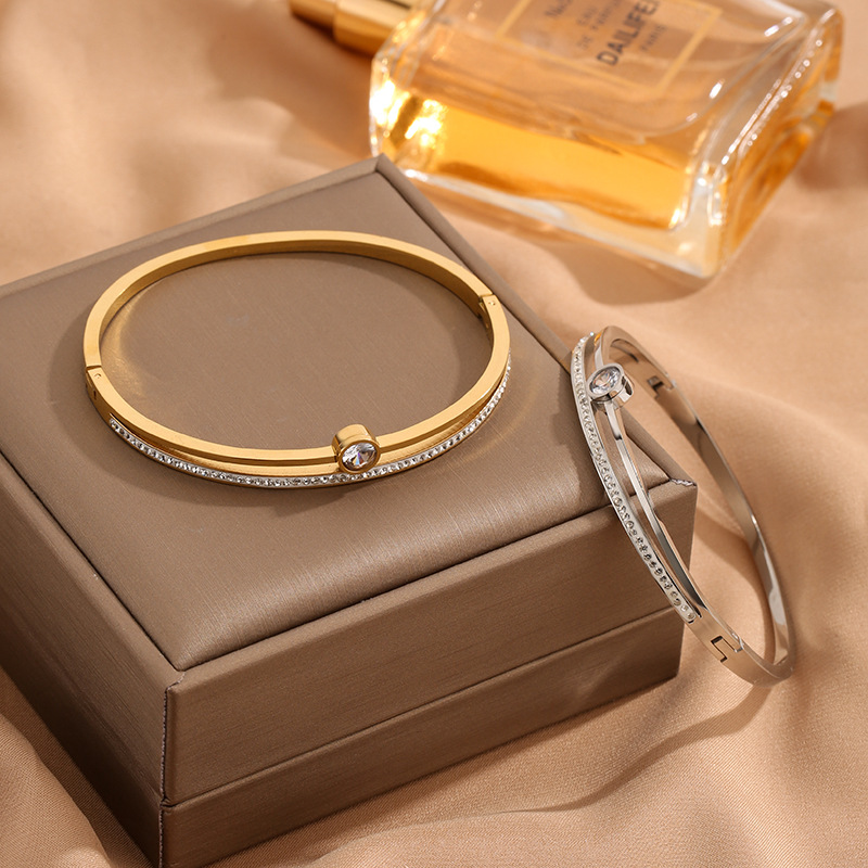 国境を越えた対外貿易の新しい満天星チタン鋼のブレスレットの女性の金はドリルを入れて高級感のある開口部の手飾りメーカーの卸売りをします。