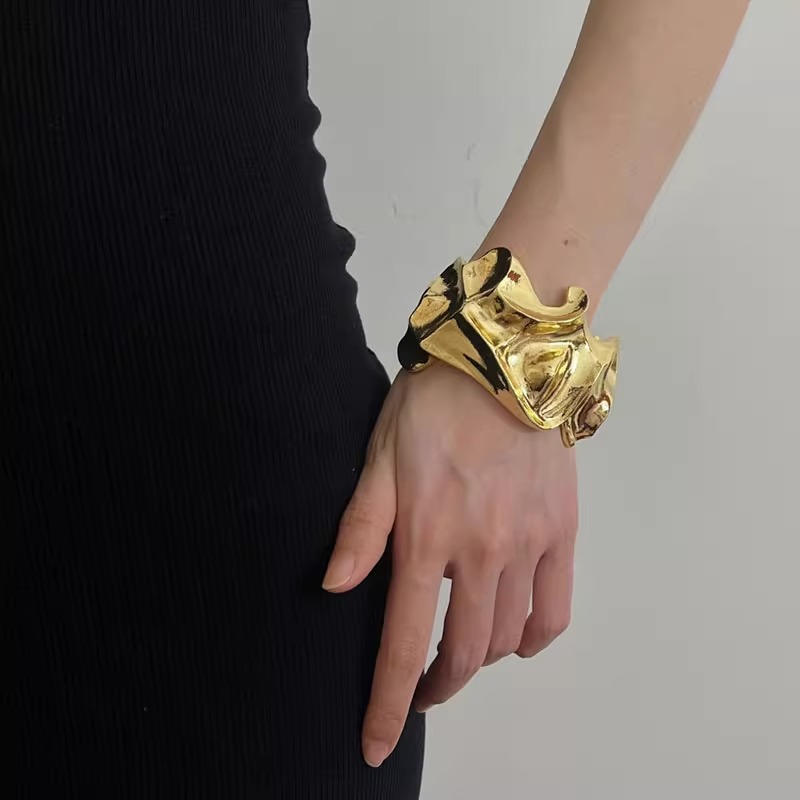 国境を越えた欧米のデザイナーの金重工は不規則な溶岩筋理感を誇張して、ブレスレットの高級感を感じます。
