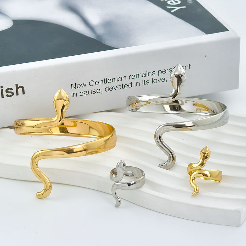 翔栩灵蛇オープンブレスレット レディース 2025年新作 ブレスレット 個性的デザイン 工場直販 蛇モチーフジュエリー