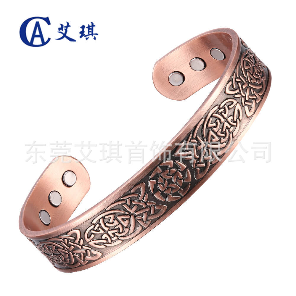 Temu新型レトロ古赤銅色磁石バイキング個性ブレスレット韓国版赤銅色オープンブレスレット