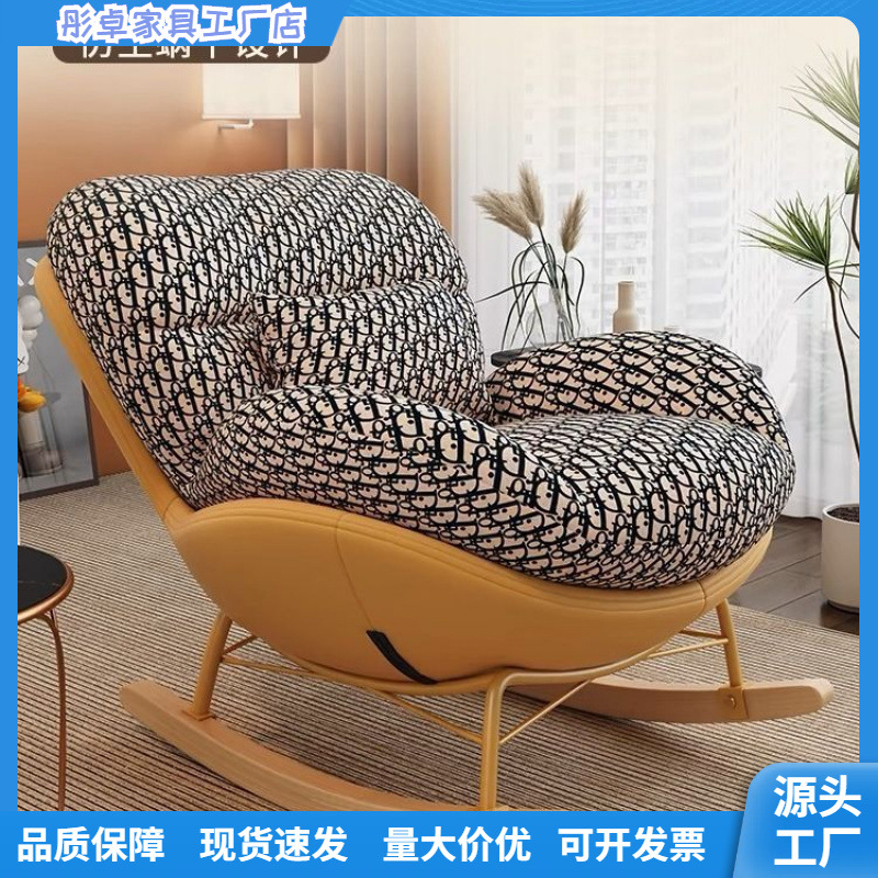 卵殻ロッキングチェア大人のリクライニングチェアバルコニーホームシングルレジャーチェアリビングルームライト高級リラクゼーションチェア怠惰なソファチェア