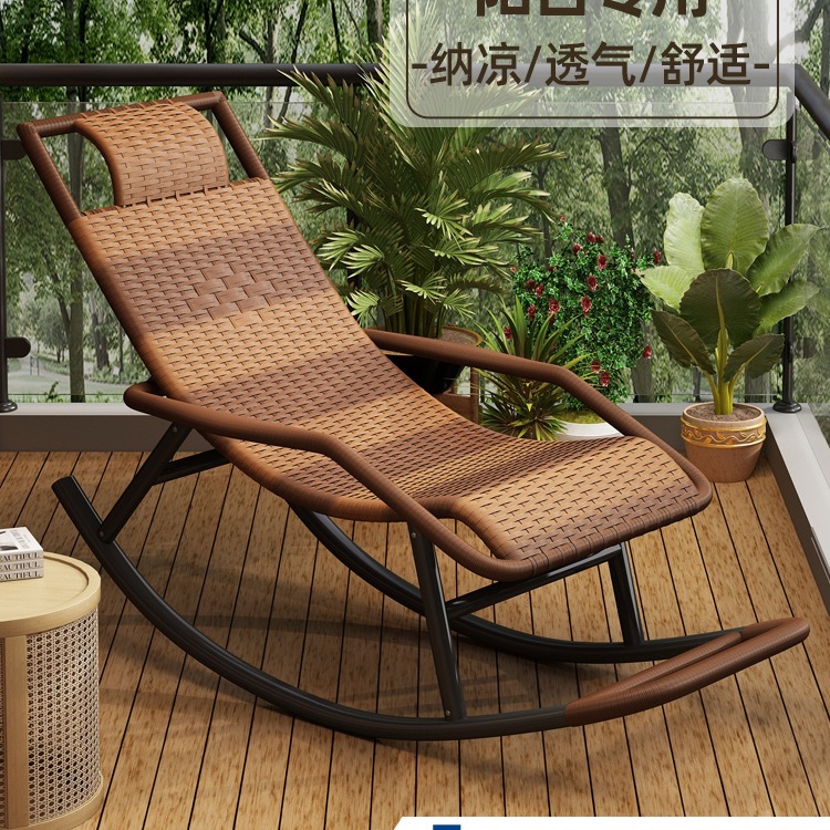 ロッキングチェアリクライニングチェア大人のガーデンバルコニーホームレジャー籐椅子怠惰なロッキングチェア高齢者屋外中庭籐椅子