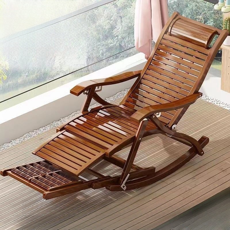 大人用折りたたみラウンジチェア、竹ロッキングチェア、家庭用昼休みチェア、怠惰な高齢者用バルコニーレジャー兼用椅子